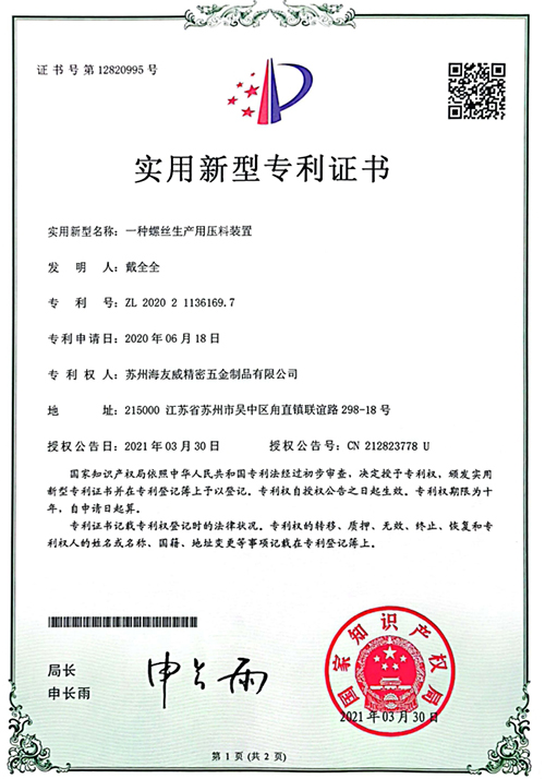 一種螺絲出產用壓料裝配